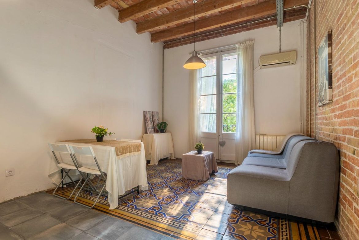 Desde el primer paso, su estilo te envuelve: suelos hidráulicos combinados con parquet, paredes de ladrillo visto y techos altos con vigas de madera y conductos a la vista que aportan un aire industrial elegante y cálido a la vez. Cada rincón refleja una cuidada armonía entre el encanto original y el confort actual.