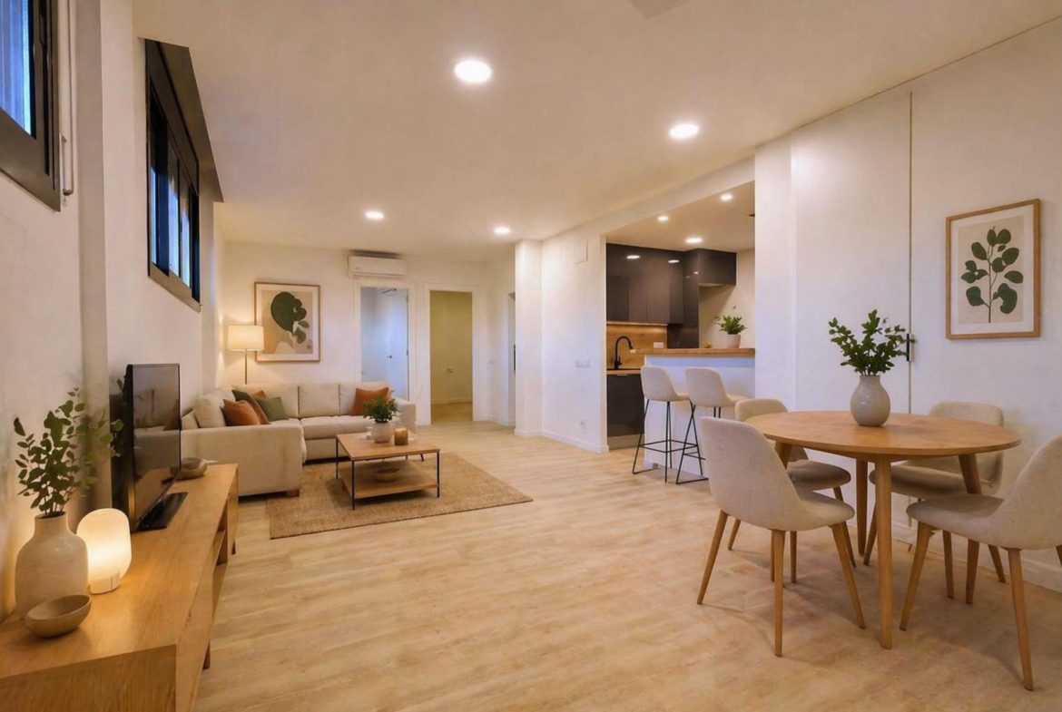 Bonita planta baja totalmente reformada a estrenar en la zona de la Ronda Ibérica. La vivienda ofrece un acogedor salón-comedor con una moderna cocina amueblada semi integrada, creando un espacio funcional. Dispone de dos dormitorios, uno de ellos doble, y un baño completo con una elegante ducha.