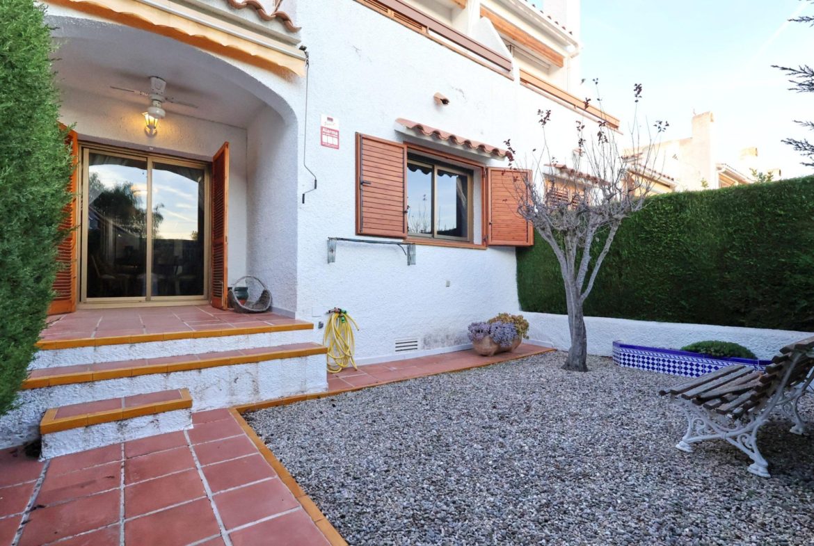 La vivienda, distribuida en dos cómodas plantas, ofrece en la planta baja una pequeña y coqueta terraza en la entrada, un amplio garaje conzona de almacenaje, , cocina independiente totalmente equipada, aseo de cortesía y un acogedor salón-comedor con chimenea, desde el cual se accede a la terraza trasera con salida directa al jardín comunitario con piscina, ideal para disfrutar del buen clima todo el año.